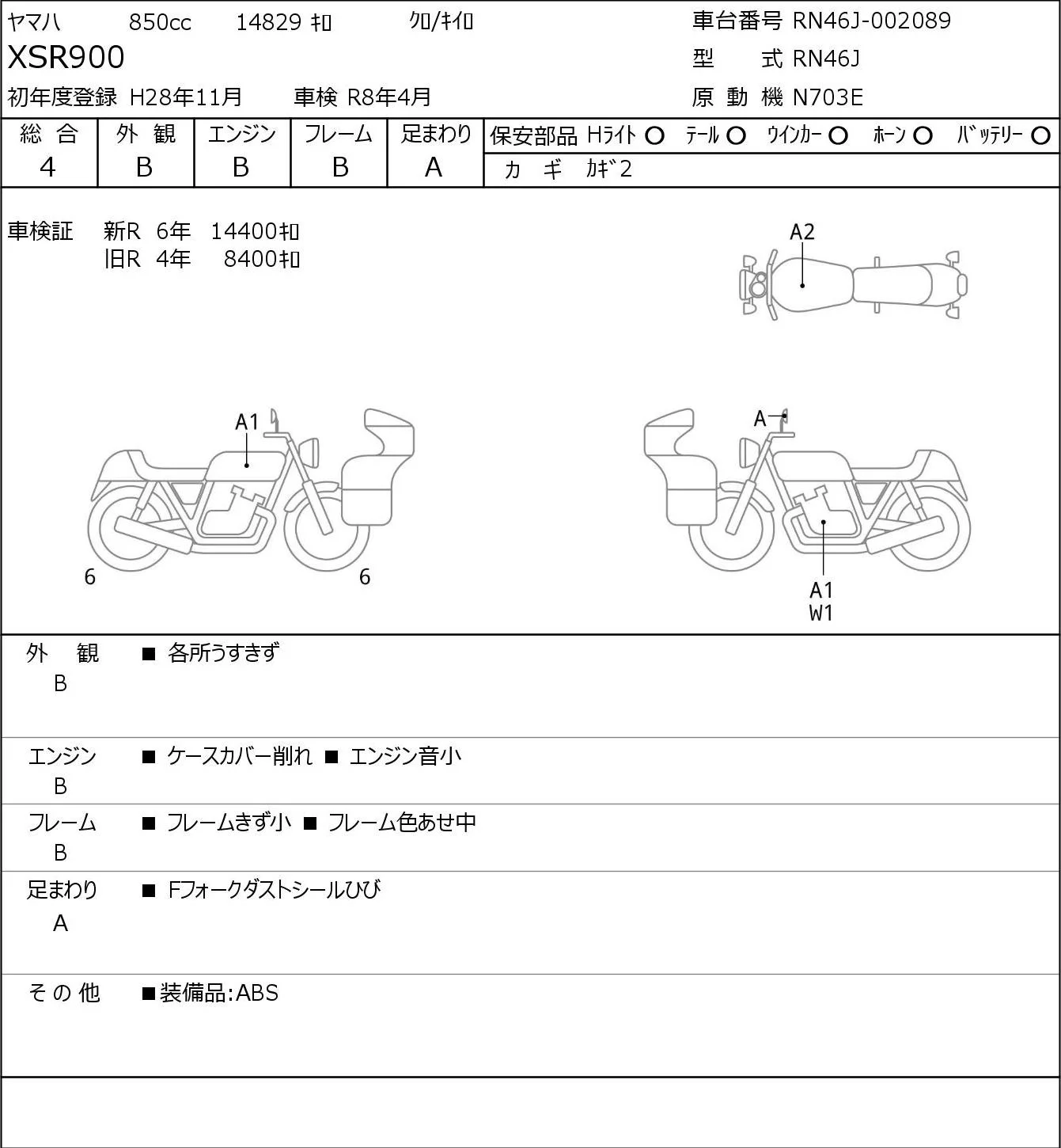 Yamaha XSR900 с аукциона Японии JBA Yokohama (Friday) лот № 8157