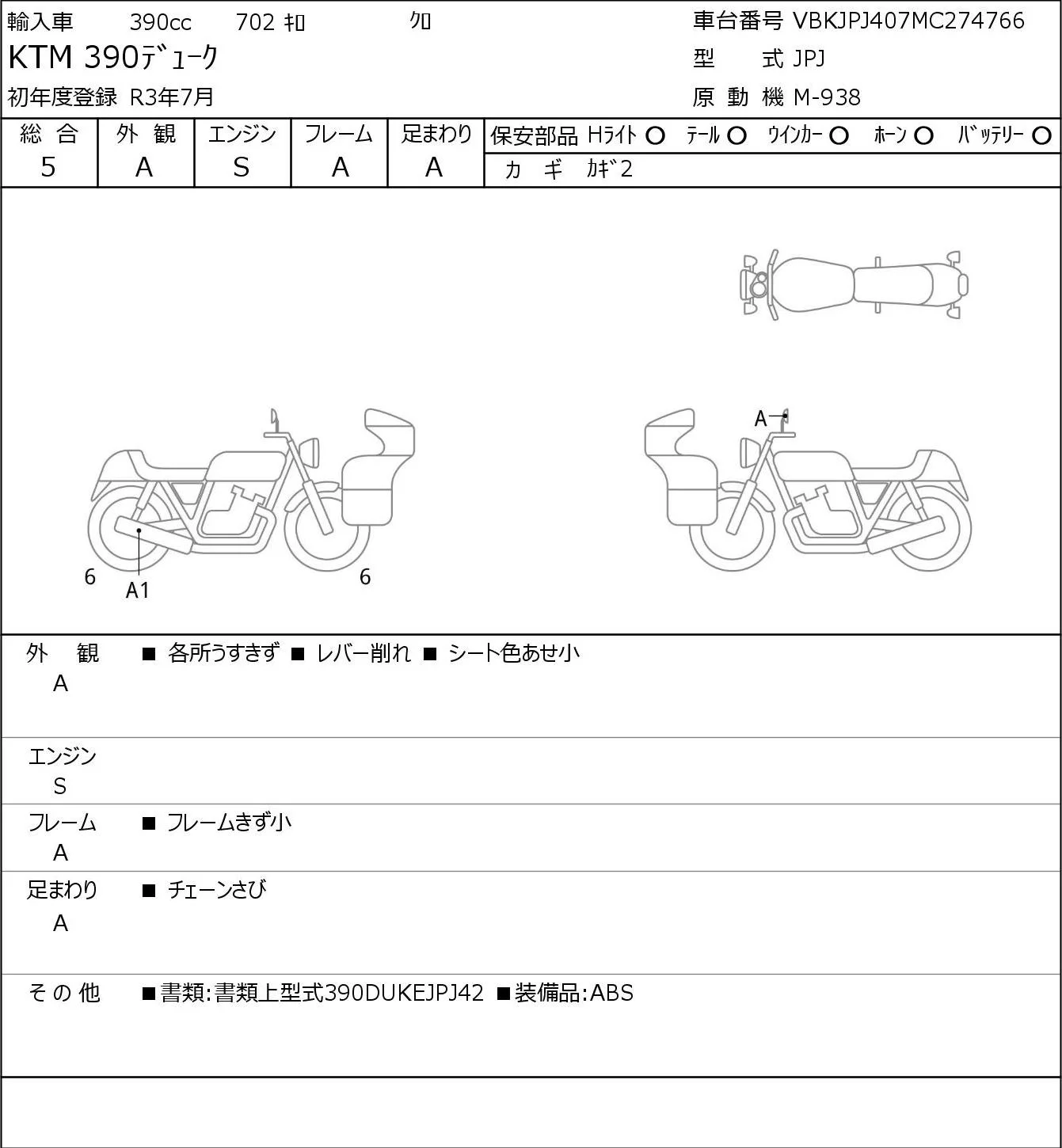 KTM 390 DUKE с аукциона Японии JBA Yokohama (Friday) лот № 8217