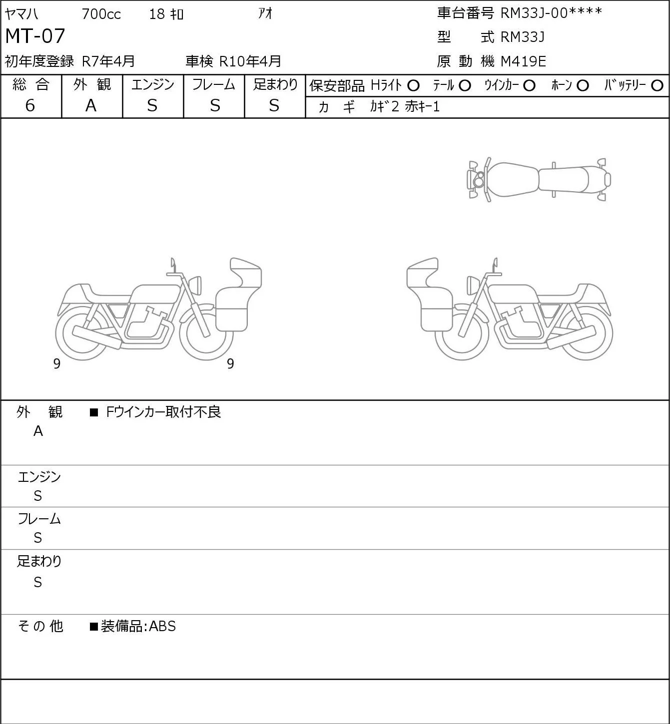 Yamaha MT-07 с аукциона Японии JBA Yokohama (Friday) лот № 8535