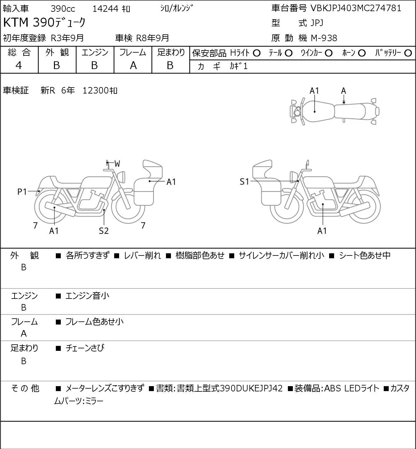 KTM 390 DUKE с аукциона Японии JBA Kobe (Tuesday) лот № 5068