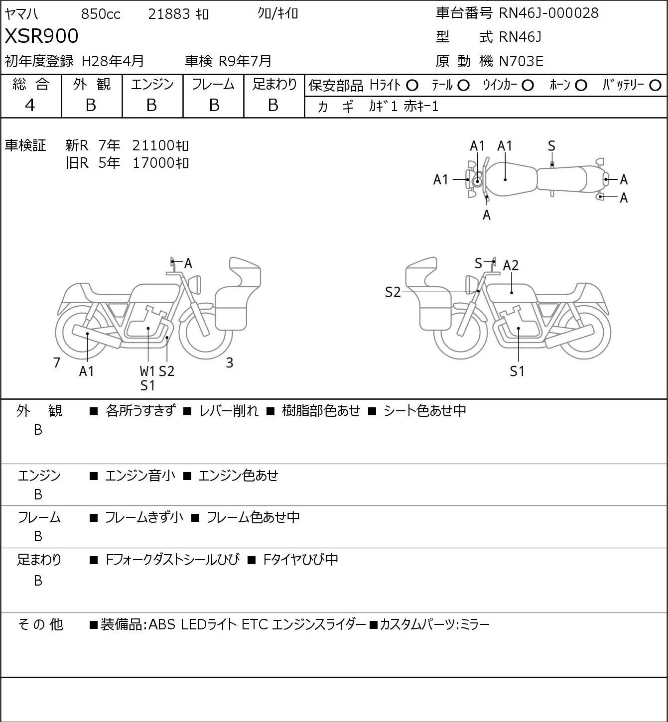 Yamaha XSR900 с аукциона Японии JBA Kobe (Tuesday) лот № 5129