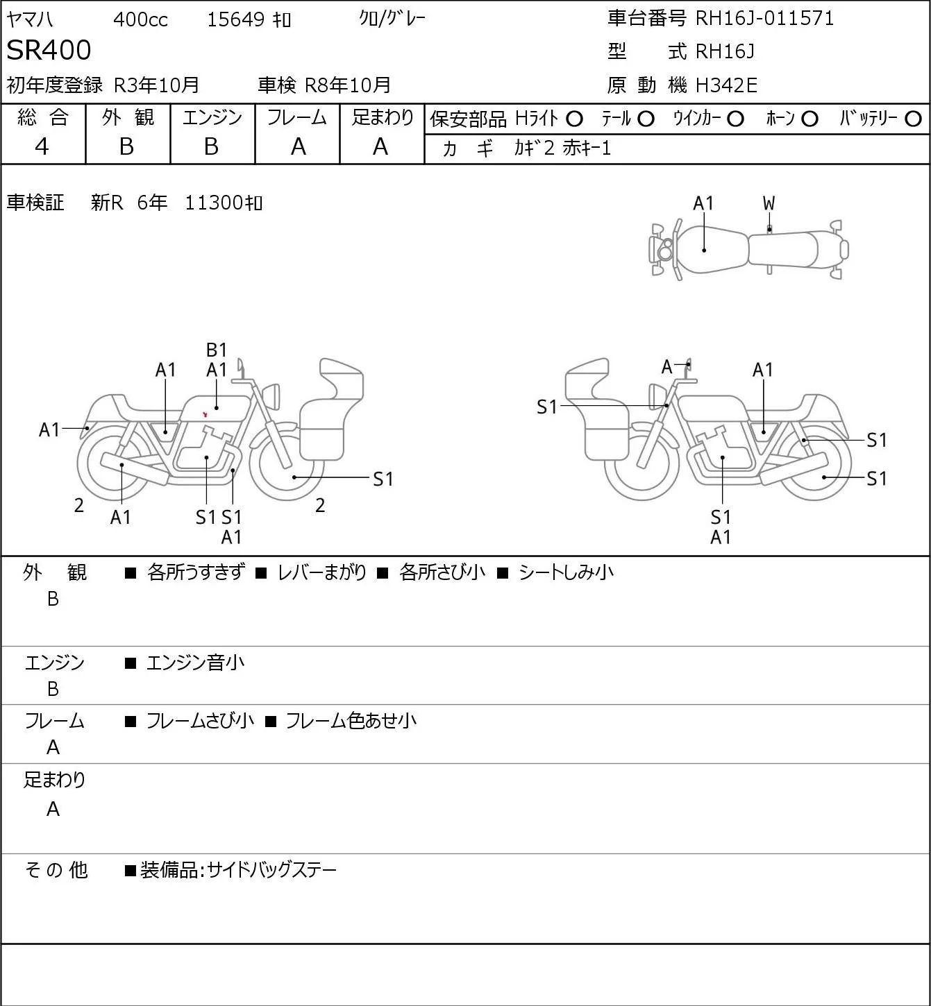 Yamaha SR400-1 с аукциона Японии JBA Yokohama (Friday) лот № 7454