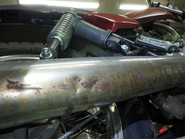 - выхлопная труба: царапина(ы) много вмятина ржавчина много