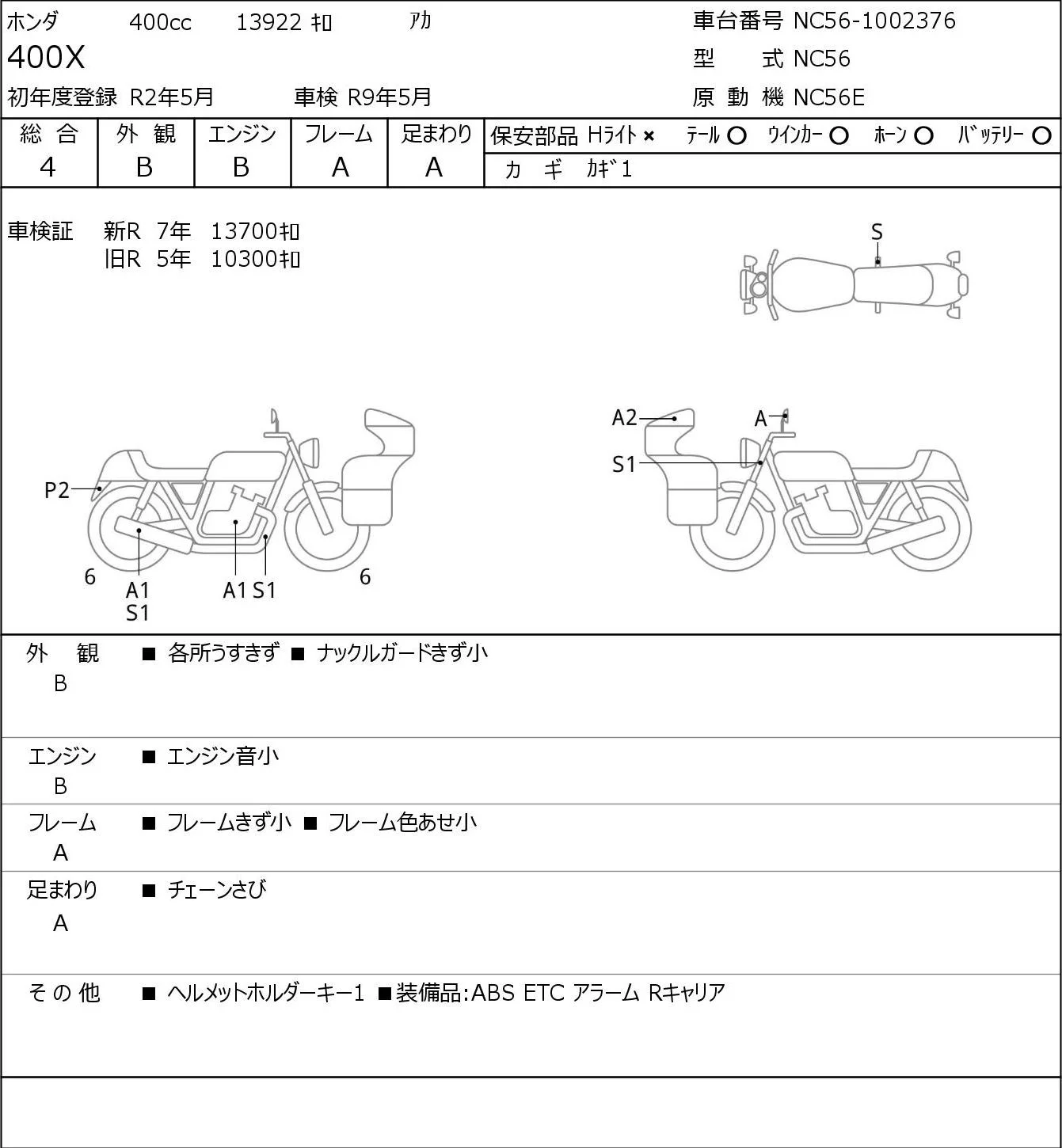 Honda 400X с аукциона Японии JBA Yokohama (Friday) лот № 7070