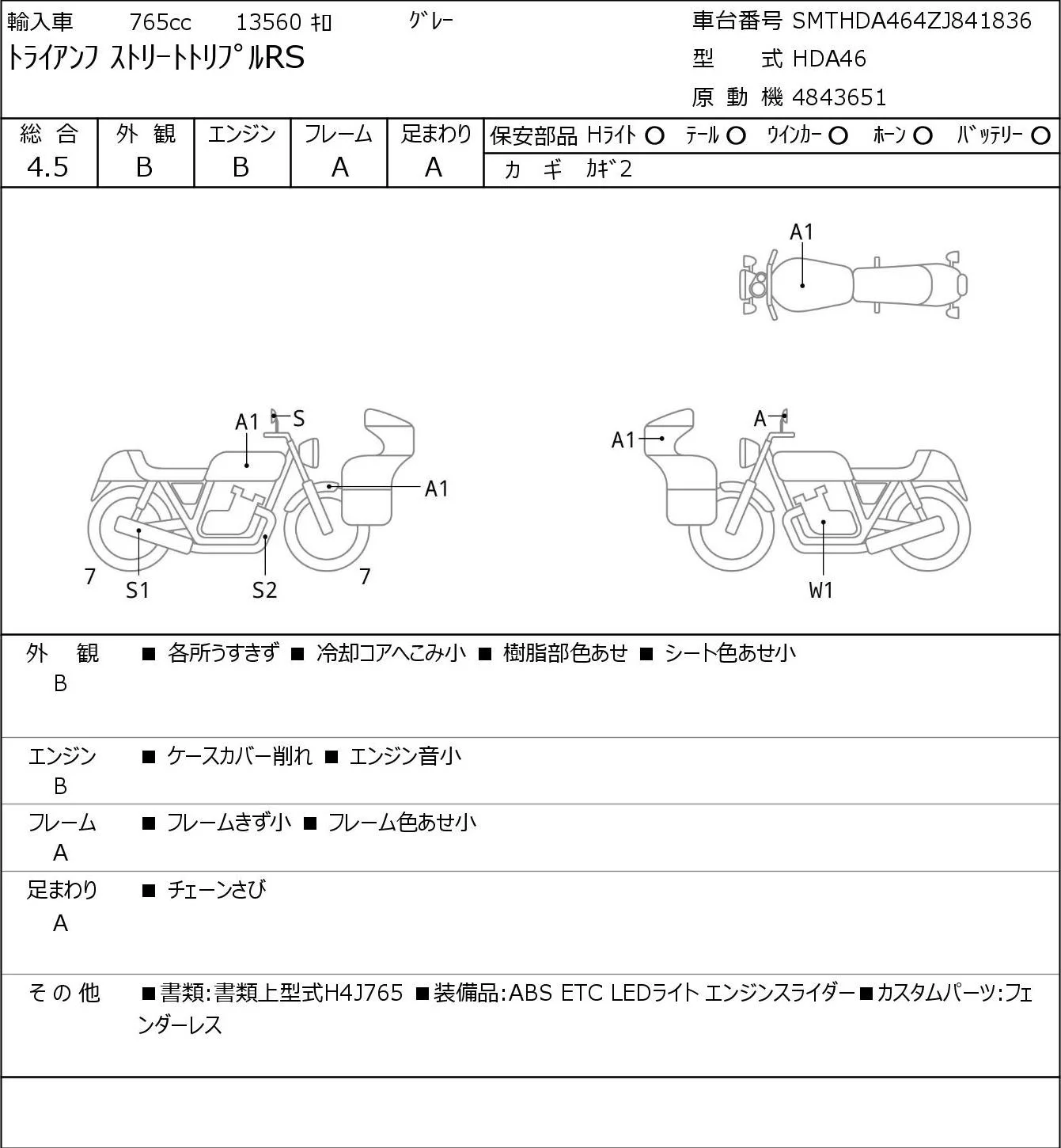 Triumph STREET TRIPLE RS с аукциона Японии JBA Kobe (Tuesday) лот № 5291