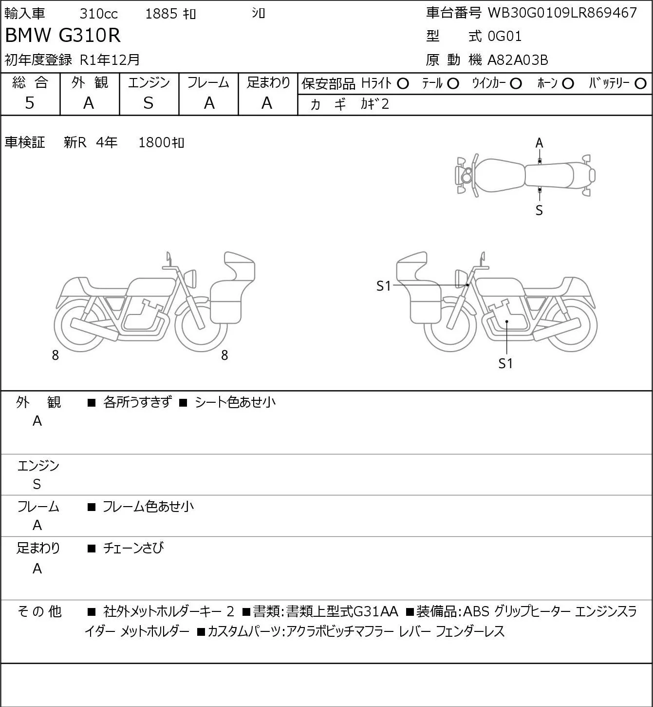 BMW G310R с аукциона Японии JBA Kobe (Tuesday) лот № 5294