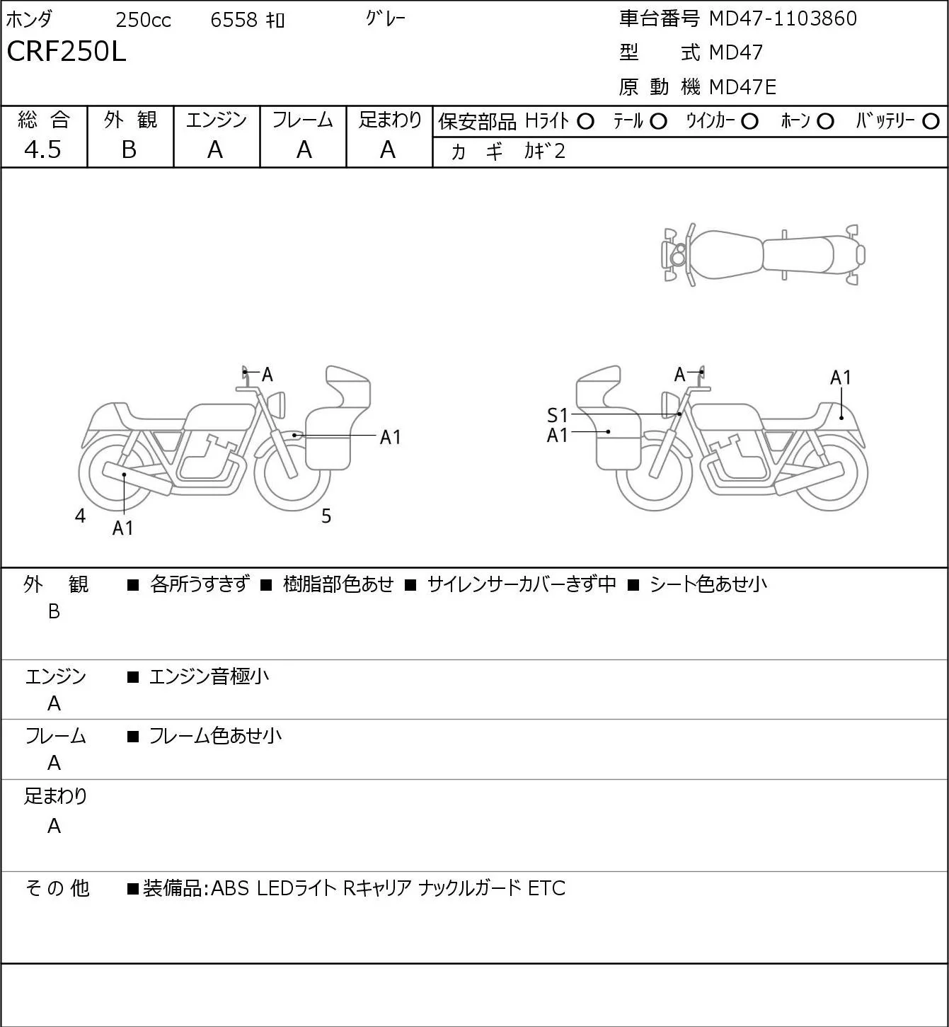 Honda CRF250L с аукциона Японии JBA Kobe (Tuesday) лот № 5463