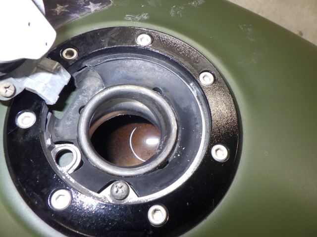 - резервуар: царапина(ы) вмятина маленький. внутри ржавчина выцветание. накладка имеется