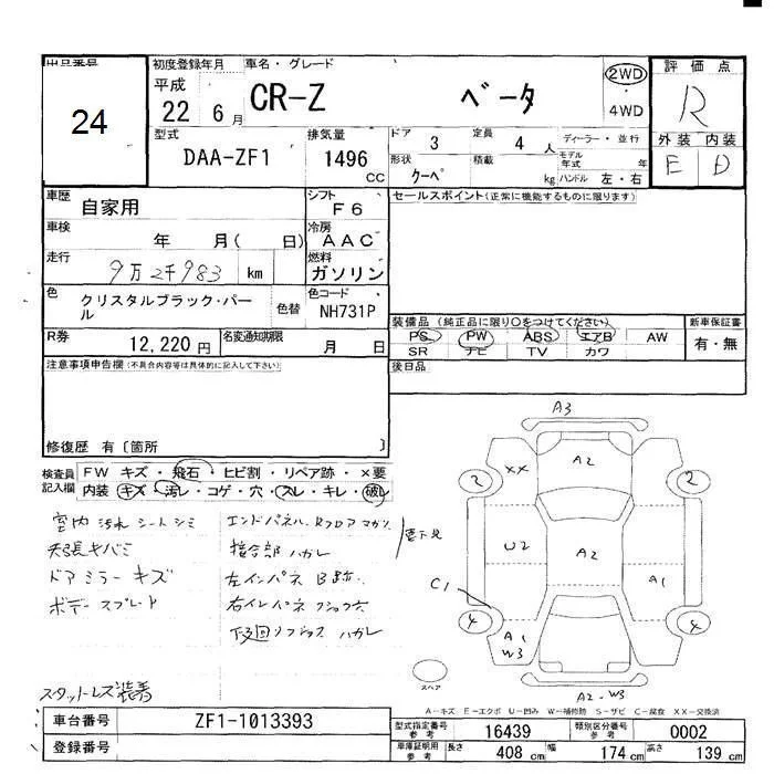 Honda CR-Z с аукциона Японии JU Hokkaido лот № 24