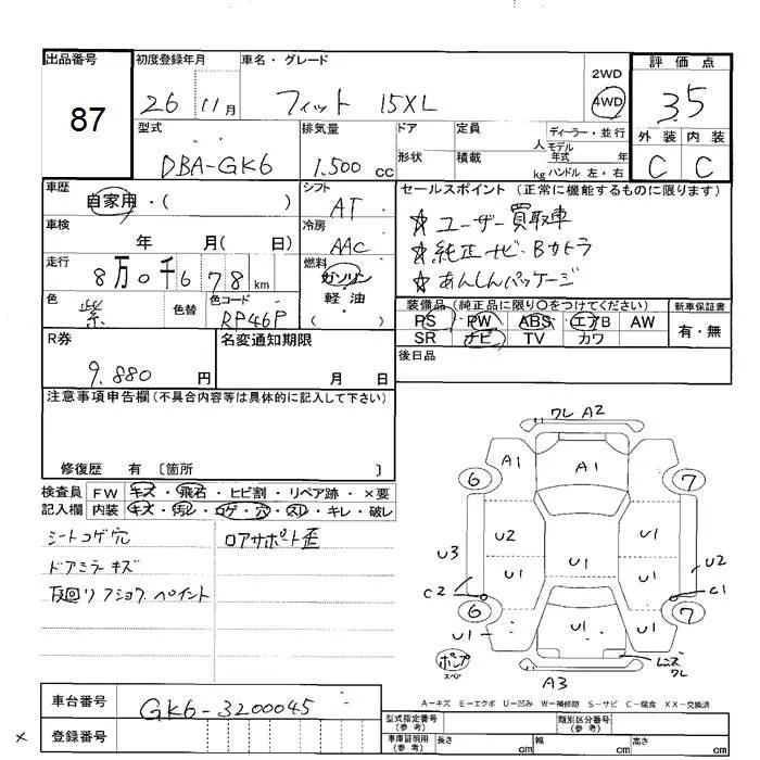 Honda FIT с аукциона Японии JU Hokkaido лот № 87