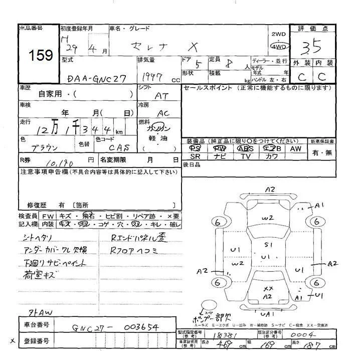 Nissan SERENA с аукциона Японии JU Hokkaido лот № 159