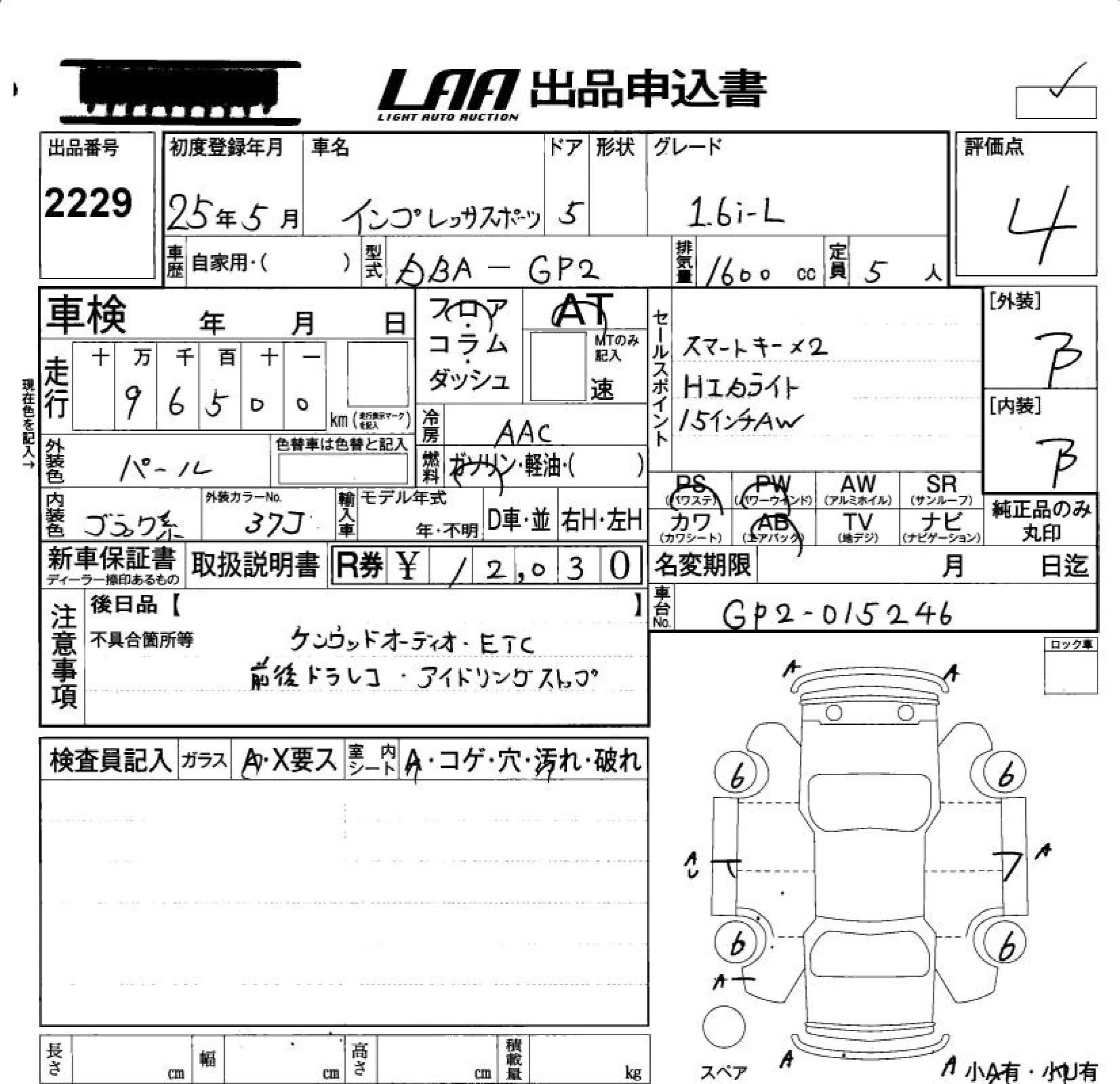 Subaru IMPREZA с аукциона Японии LAA Okayama лот № 2229