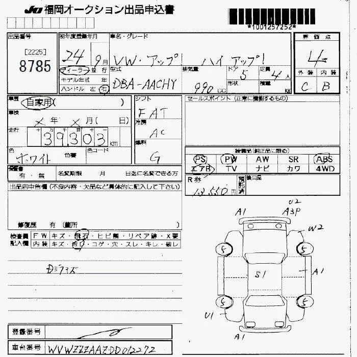 Volkswagen UP с аукциона Японии JU Fukuoka лот № 8785