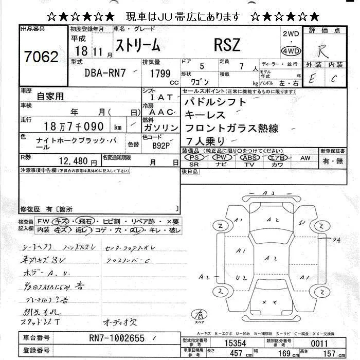 Honda STREAM с аукциона Японии JU Hokkaido лот № 7062