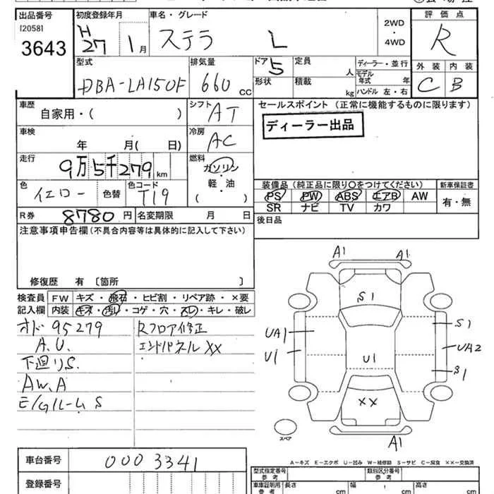 Subaru STELLA с аукциона Японии JU Niigata лот № 3643