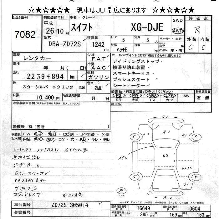 Suzuki SWIFT с аукциона Японии JU Hokkaido лот № 7082