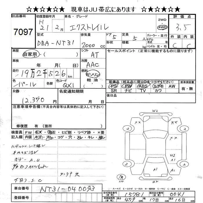 Nissan X-TRAIL с аукциона Японии JU Hokkaido лот № 7097