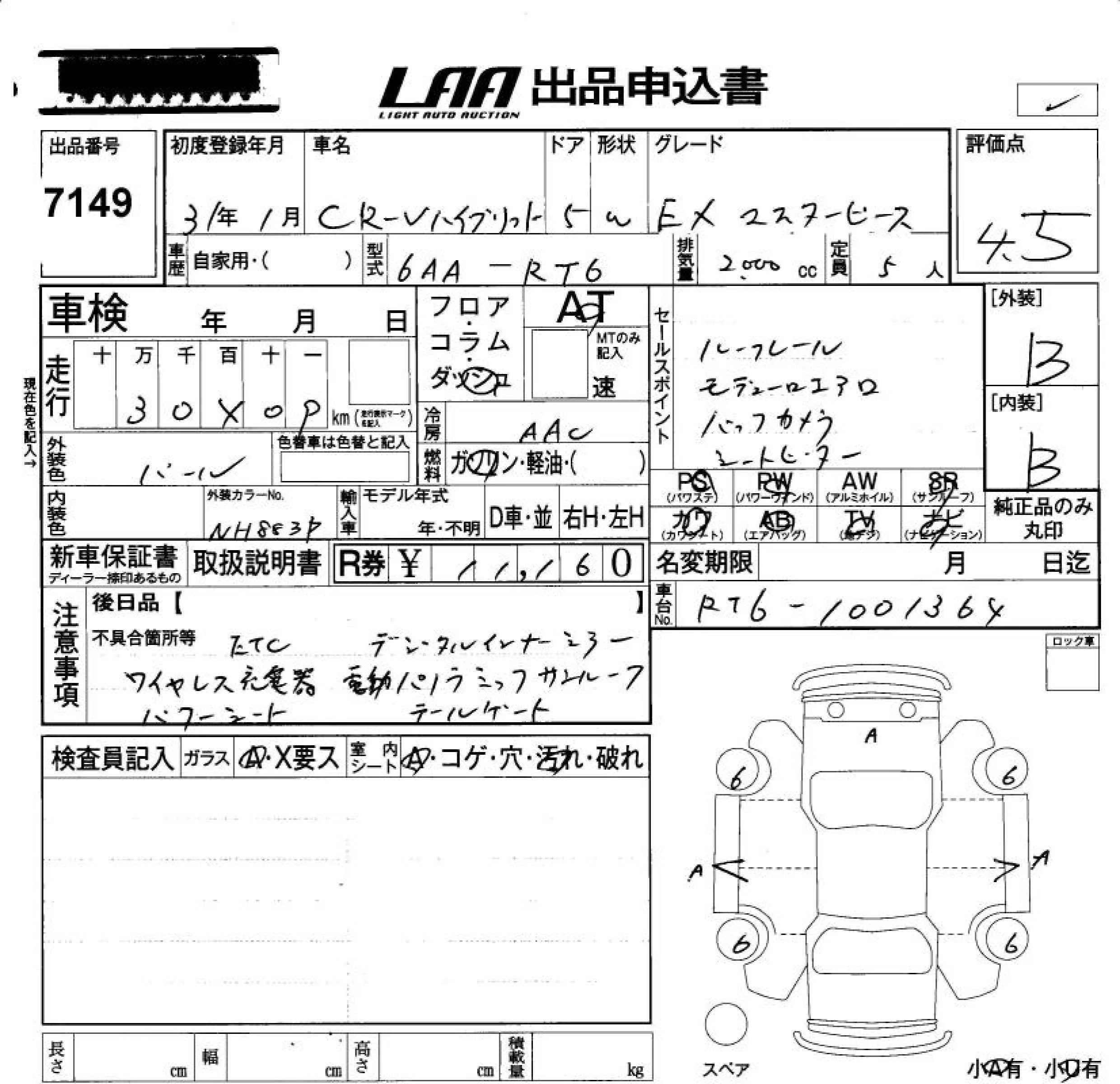 Honda CR-V с аукциона Японии LAA Okayama лот № 7149