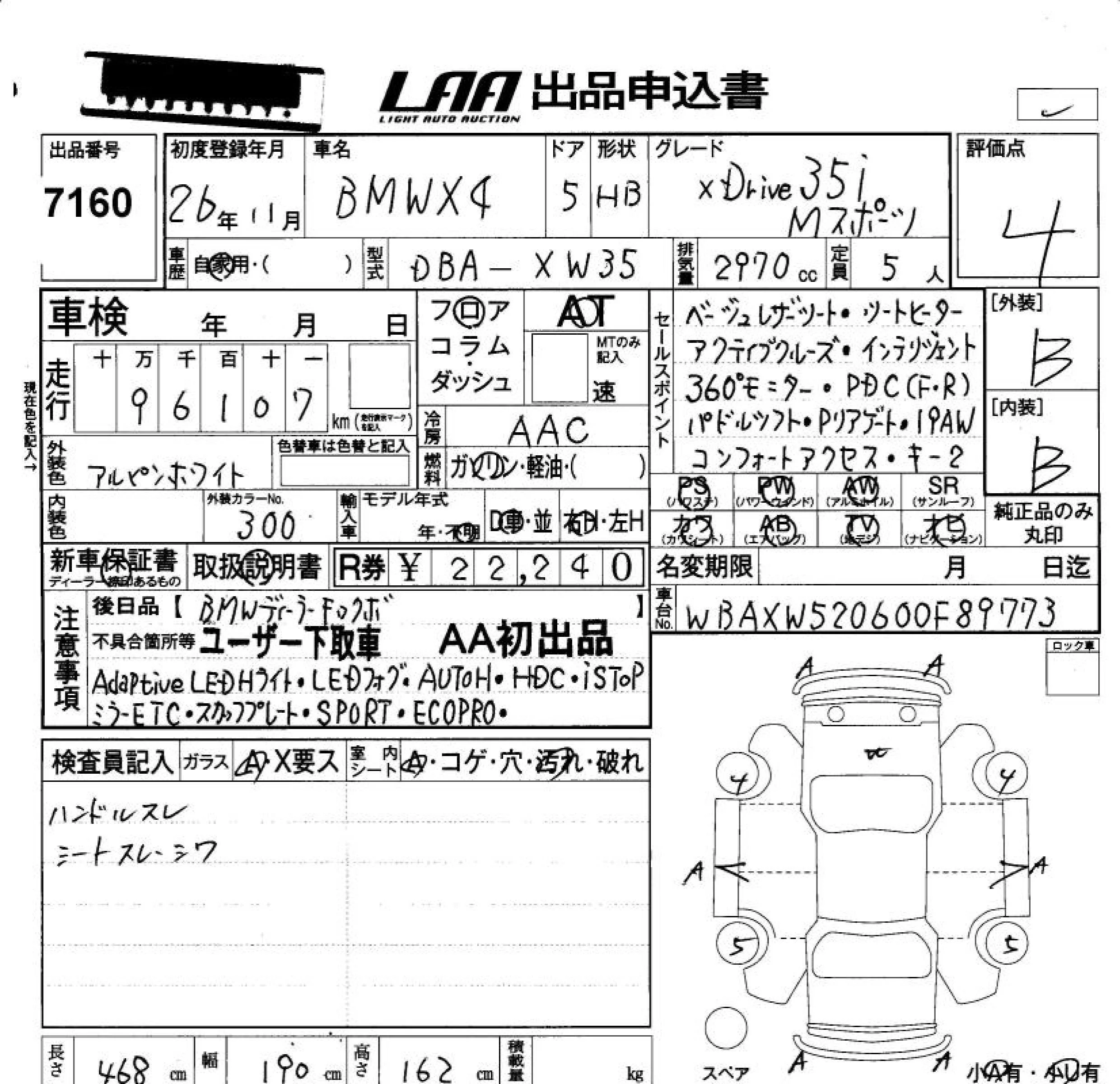 BMW X4 с аукциона Японии LAA Okayama лот № 7160