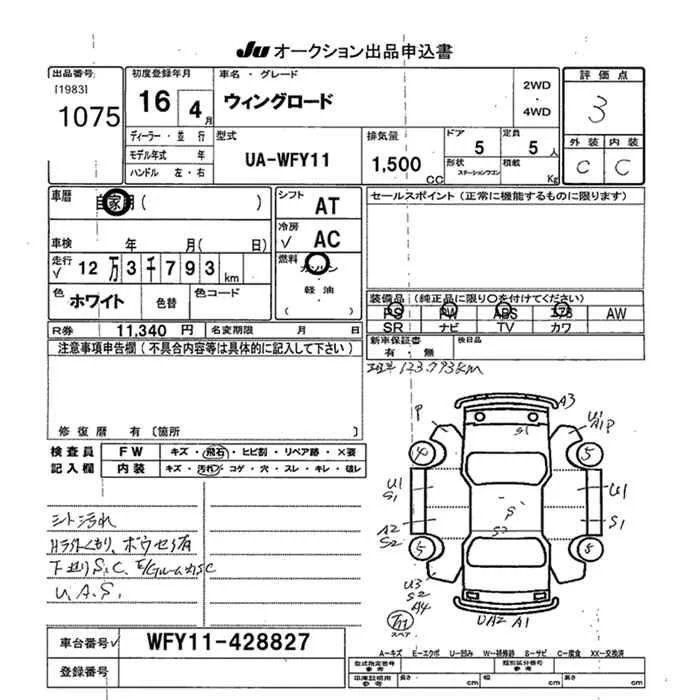 Nissan WINGROAD с аукциона Японии JU Okinawa лот № 1075