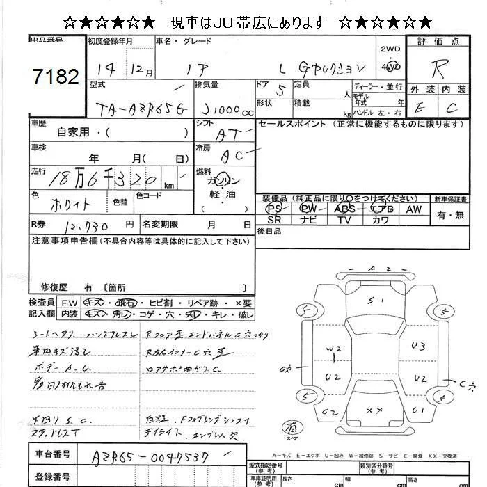 Toyota NOAH с аукциона Японии JU Hokkaido лот № 7182