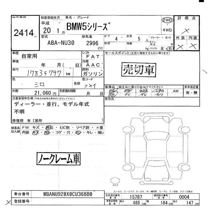 BMW 5-Series с аукциона Японии JU Hokkaido лот № 2414