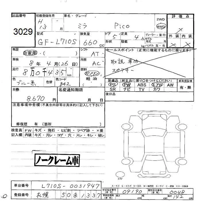 Daihatsu MIRA с аукциона Японии JU Hokkaido лот № 3029