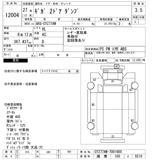 Isuzu GIGA с аукциона Японии ARAI Oyama VT лот № 12004