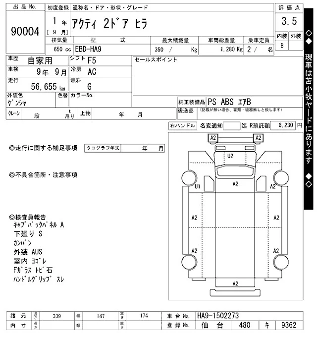 Honda ACTY TRUCK с аукциона Японии ARAI Oyama VT лот № 90004