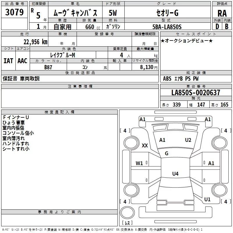 Daihatsu MOVE CANBUS с аукциона Японии TAA Hyogo лот № 3079