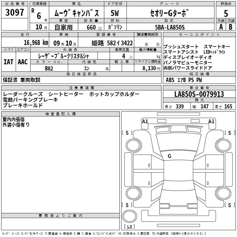 Daihatsu MOVE CANBUS с аукциона Японии TAA Hyogo лот № 3097
