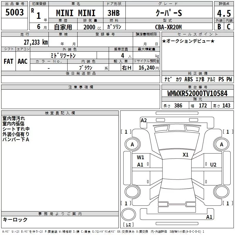 BMW MINI с аукциона Японии TAA Hyogo лот № 5003