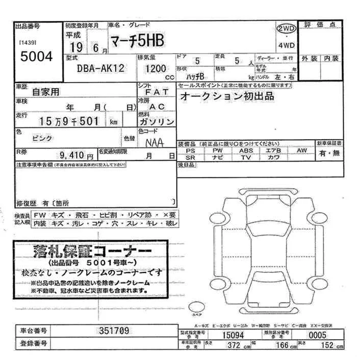 Nissan MARCH с аукциона Японии JU Yamanashi лот № 5004