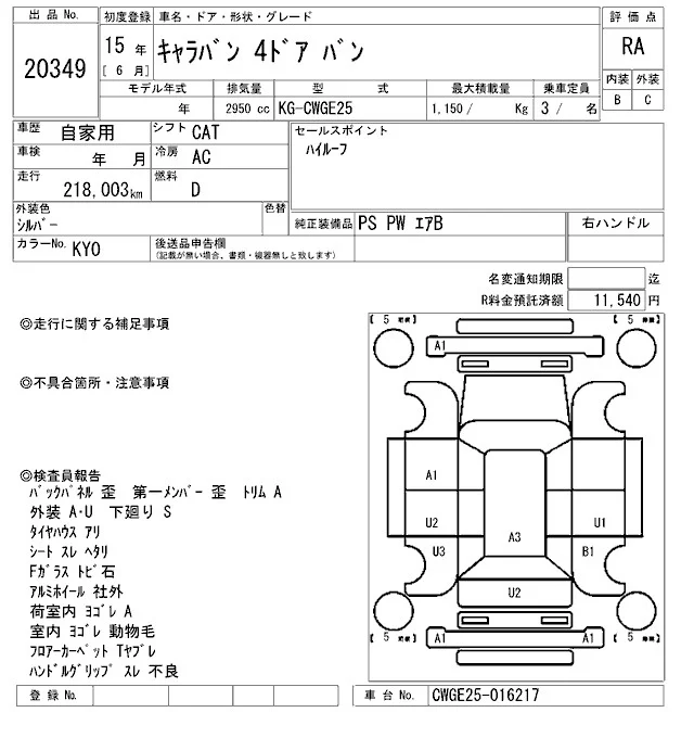 Nissan CARAVAN VAN с аукциона Японии ARAI Oyama VT лот № 20349