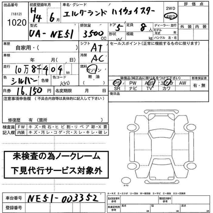 Nissan ELGRAND с аукциона Японии JU Nara лот № 1020