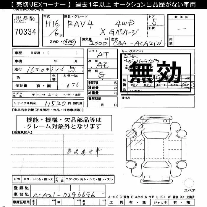 Toyota RAV4 с аукциона Японии JU Gifu лот № 70334