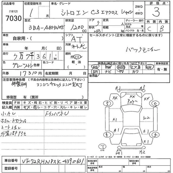 Citroen C3 с аукциона Японии JU Nara лот № 7030