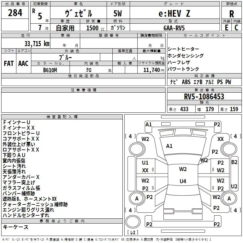 Honda VEZEL с аукциона Японии TAA Yokohama лот № 284