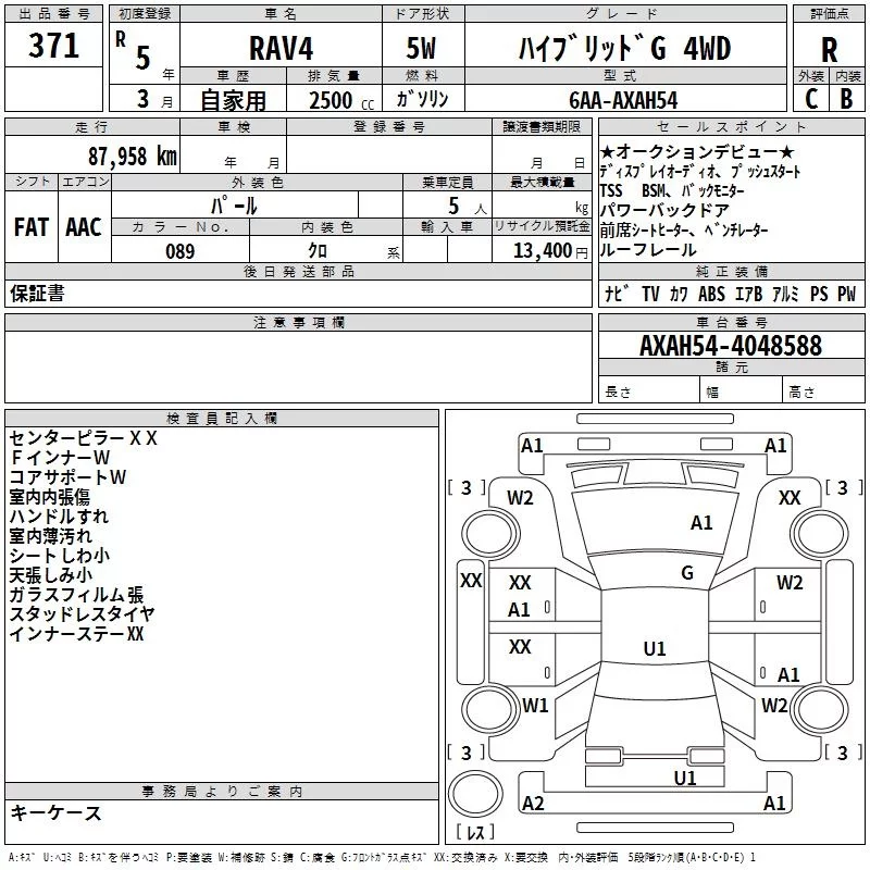 Toyota RAV4 с аукциона Японии TAA Yokohama лот № 371