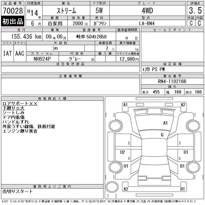 Honda STREAM с аукциона Японии CAA Gifu лот № 70028