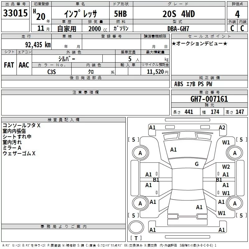 Subaru IMPREZA с аукциона Японии TAA Kyushu лот № 33015