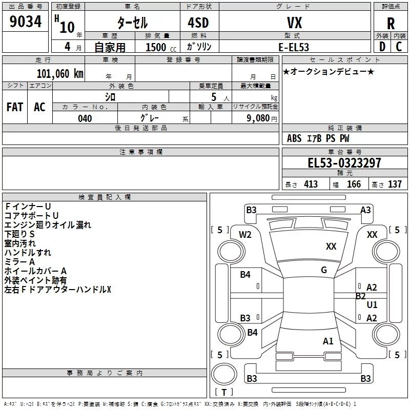 Toyota TERCEL с аукциона Японии TAA Minami Kyushu лот № 9034