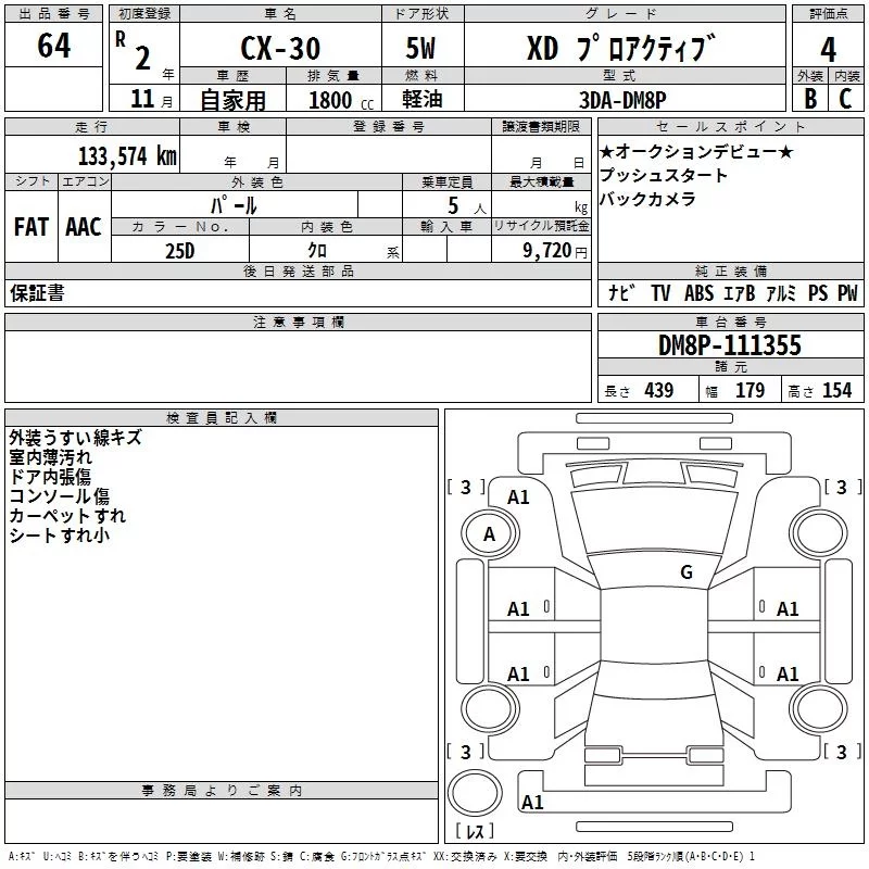 Mazda CX-30 с аукциона Японии TAA Kinki лот № 64