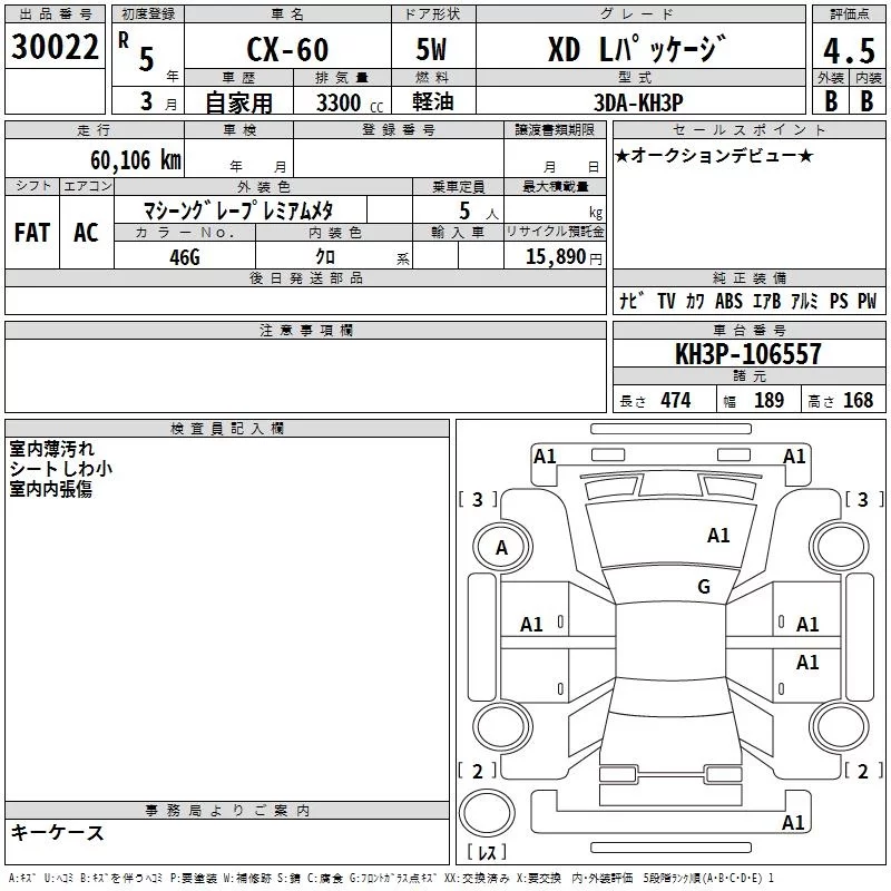 Mazda CX-60 с аукциона Японии TAA Kyushu лот № 30022