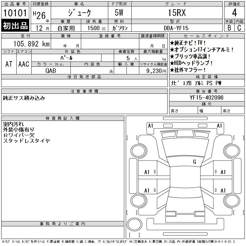 Nissan JUKE с аукциона Японии CAA Tokyo лот № 10101