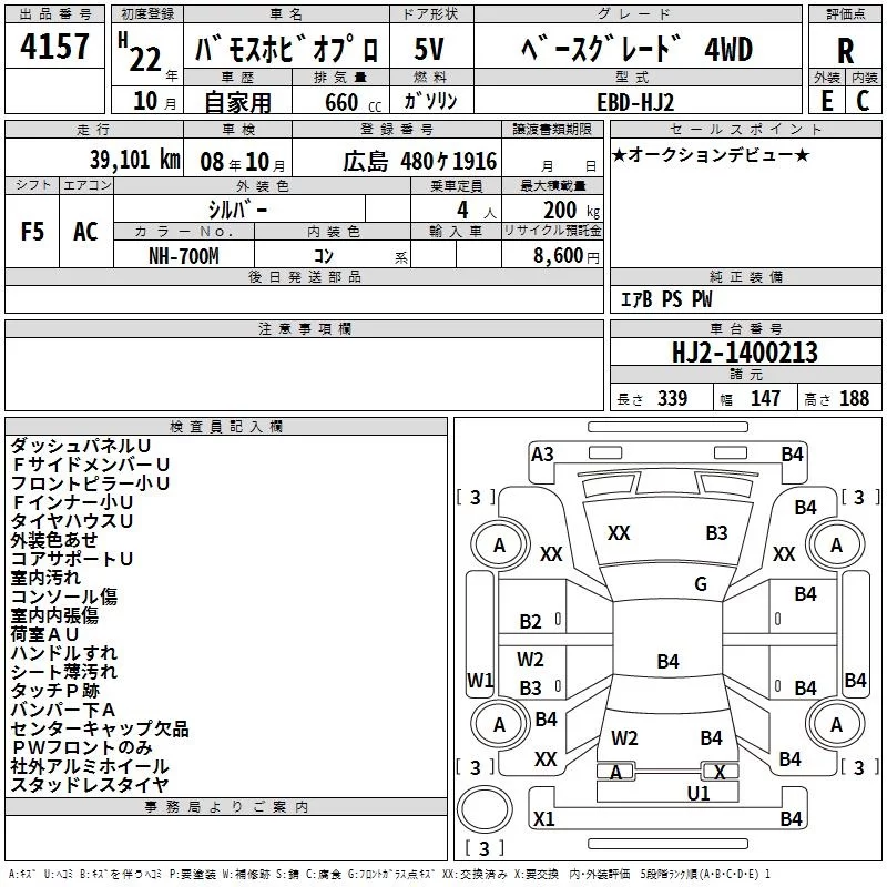 Honda VAMOS с аукциона Японии TAA Hiroshima лот № 4157