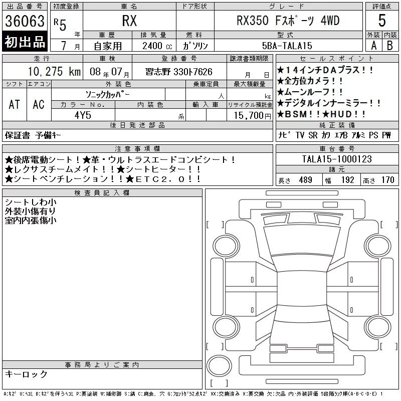 Lexus RX с аукциона Японии CAA Tokyo лот № 36063