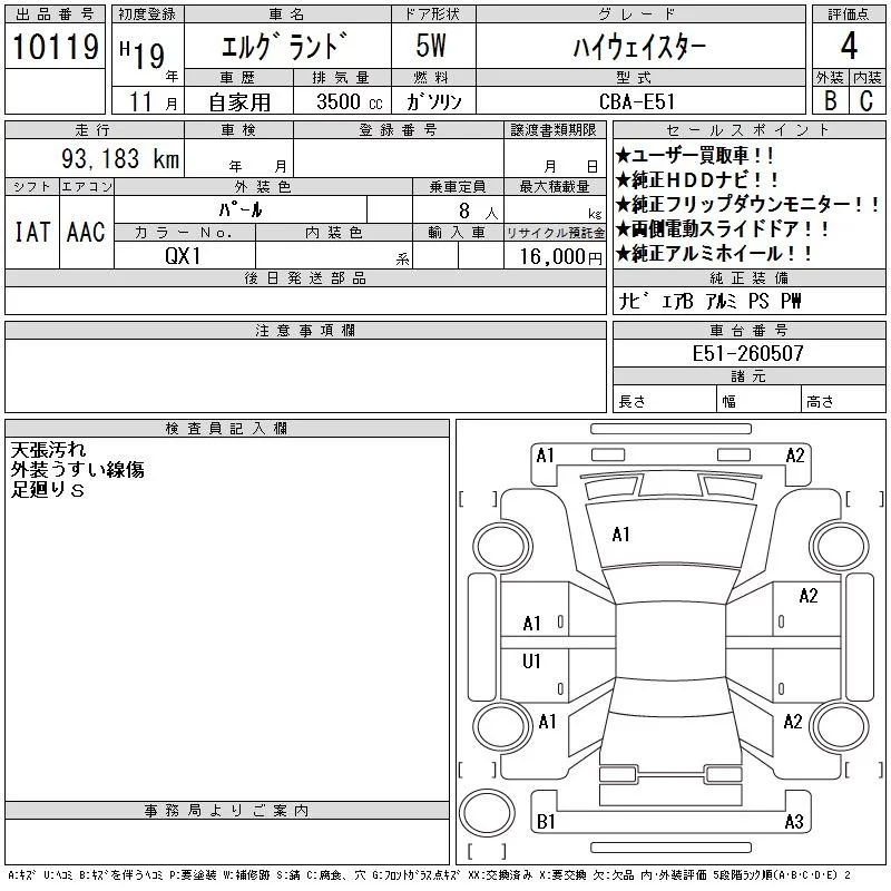 Nissan ELGRAND с аукциона Японии CAA Tokyo лот № 10119