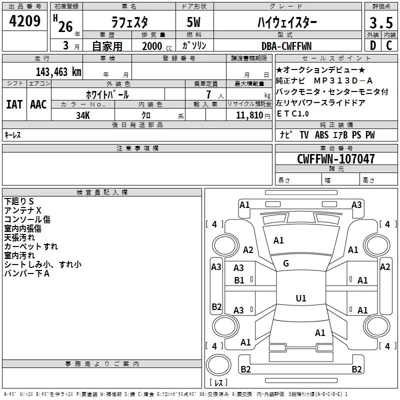 Nissan LAFESTA с аукциона Японии TAA Hiroshima лот № 4209