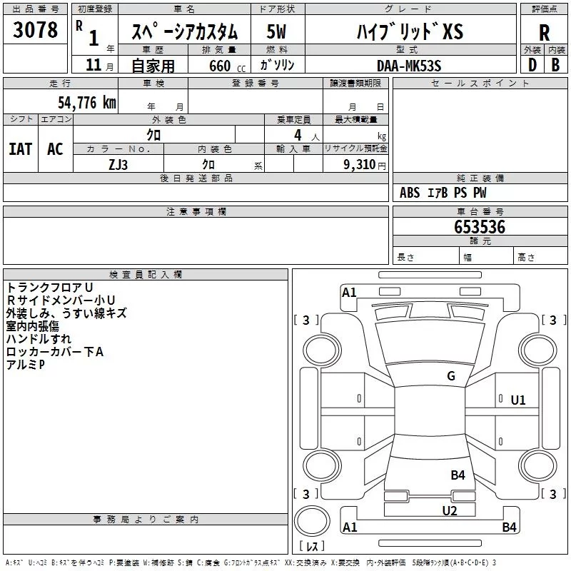 Suzuki SPACIA с аукциона Японии TAA Kinki лот № 3078